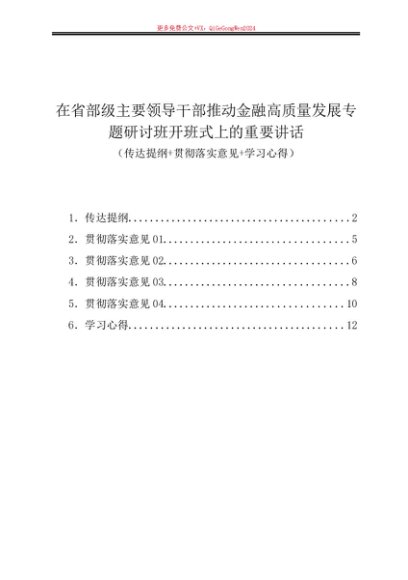 / 第一议题:20240116在省部级主要领导干部推动金融高质量发展专题研讨班开班式上的重要讲话(传达提纲+落实意见+学习心得)