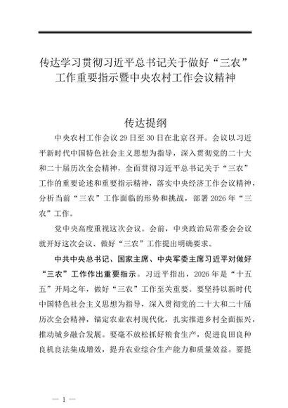 / 第一议题:20251230传达学习贯彻习近平总书记关于做好“三农”工作重要指示暨中央农村工作会议精神
