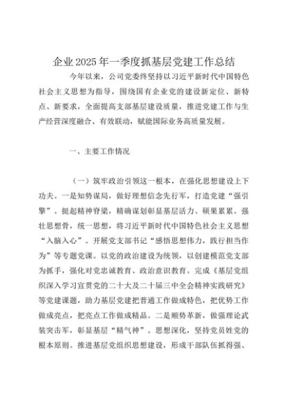 / 工作总结:20250422企业2025年一季度抓基层党建工作总结