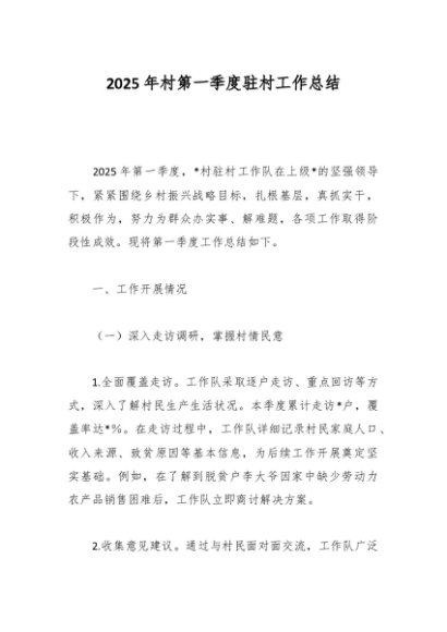 / 工作总结:20250424村第一季度驻村工作总结