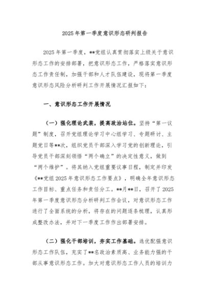 / 工作总结:2025年2025年第一季度意识形态研判报告