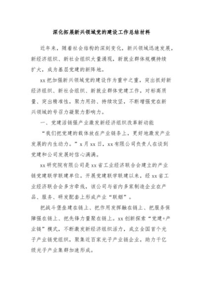 / 工作总结:20250423深化拓展新兴领域党的建设工作总结材料