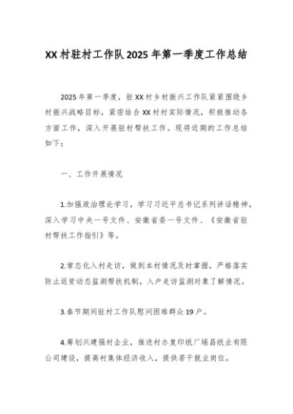 / 工作总结:20250423驻村工作队2025年第一季度工作总结