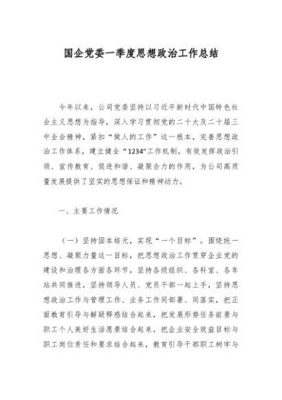 / 工作总结:20250423国企党委一季度思想政治工作总结