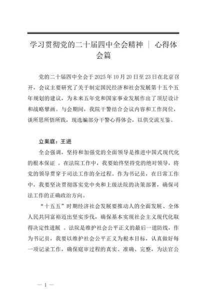 / 交流发言:20251024鄂尔多斯法院系统学习贯彻党的二十届四中全会精神心得体会交流发言汇编(4篇)