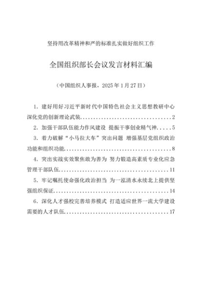 / 交流发言:20250127全国组织部长会议发言材料汇编(6篇)