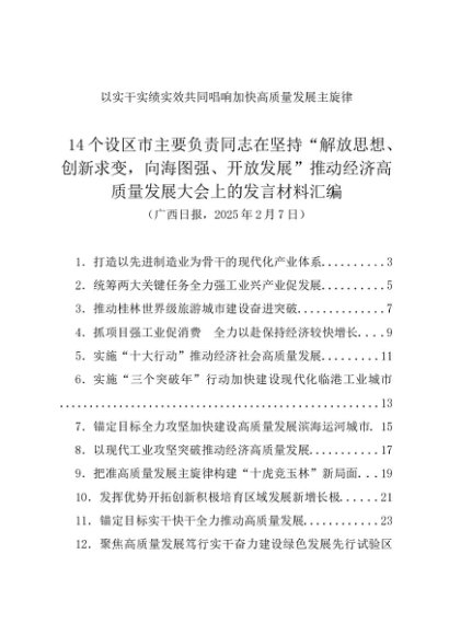 / 交流发言:20250207设区市主要负责同志在推动经济高质量发展大会上的发言材料汇编(14篇)