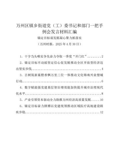 / 交流发言:20250430万州区镇乡街道党(工)委书记和部门一把手例会发言材料汇编(6篇)