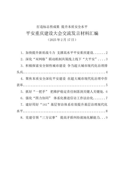 / 交流发言:20250217平安重庆建设大会交流发言材料汇编(8篇)