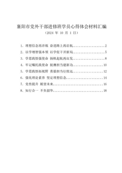 / 交流发言:20241001襄阳市党外干部进修班学员心得体会材料汇编8篇