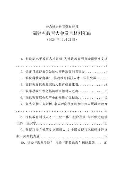 / 交流发言:20241224福建省教育大会发言材料汇编(10篇)