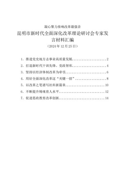 / 交流发言:20241225昆明市新时代全面深化改革理论研讨会专家发言材料汇编(7篇)