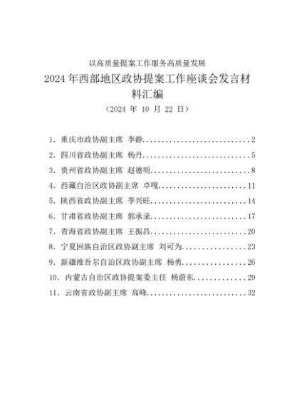 / 交流发言:20241022西部地区政协提案工作经验总结交流座谈会发言材料(11篇)