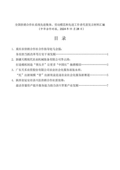 / 交流发言:20241128全国供销合作社系统先进集体、劳动模范和先进工作者代表发言材料汇编(4篇)