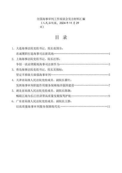 / 交流发言:20241129全国海事审判工作座谈会发言材料汇编(6篇)