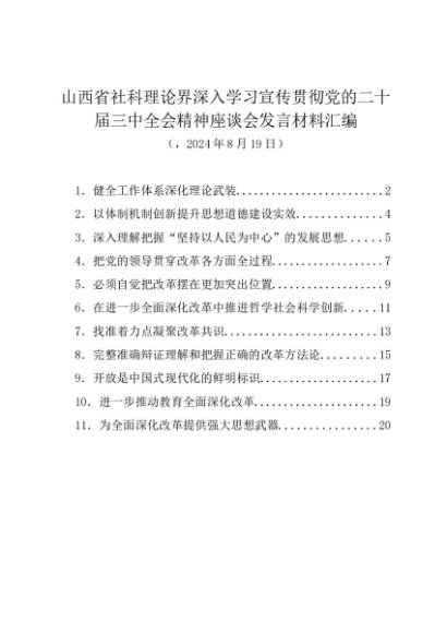/ 交流发言:20240811山西省社科理论界深入学习宣传贯彻党的二十届三中全会精神座谈会发言材料汇编(11篇)