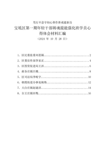 / 交流发言:20241107宝坻区第一期年轻干部铸魂提能强化班学员心得体会发言材料汇编(8篇)