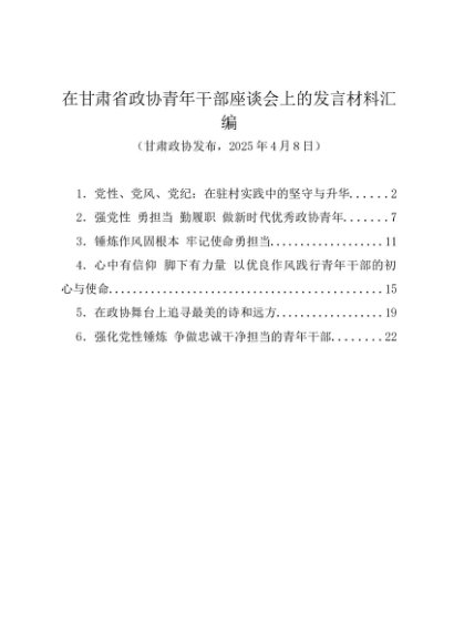 / 交流发言:20250408在甘肃省政协青年干部座谈会上的发言材料汇编(6篇)