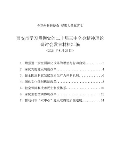 / 交流发言:20240829西安市学习贯彻党的二十届三中全会精神理论研讨会发言材料汇编(7篇)