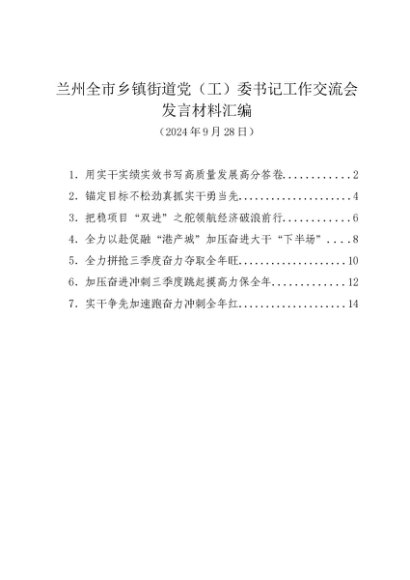 / 交流发言:20240928兰州全市乡镇街道党(工)委书记工作交流会发言材料汇编(7篇)