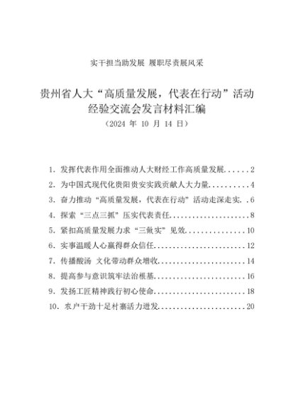 / 交流发言:20241014贵州省人大“高质量发展,代表在行动”活动经验交流会发言材料汇编10篇