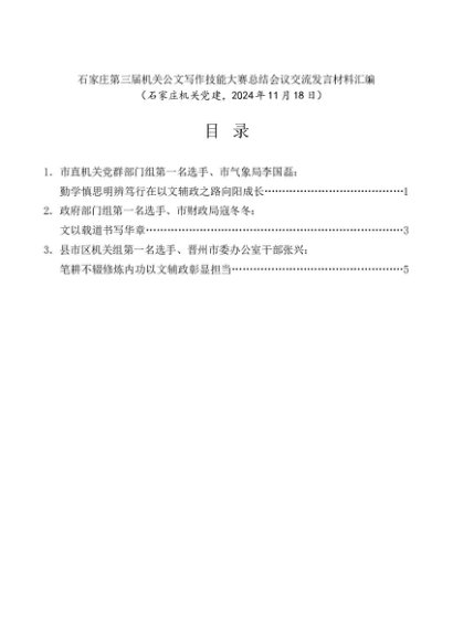 / 交流发言:20241118石家庄第三届机关公文写作技能大赛总结会议交流发言材料汇编(3篇)