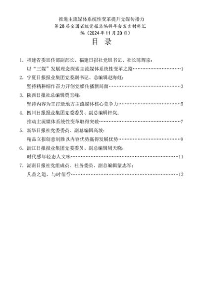 / 交流发言:20241120推进主流媒体系统性变革提升党媒传播力——第28届全国省级党报总编辑年会发言材料汇编(8篇)