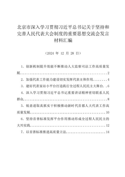 交流发言:20241228北京市深入学习贯彻习近平总书记关于坚持和完善人民代表大会制度的重要思想交流会发言材料汇编(7篇)