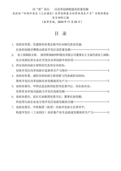 / 交流发言:20241120省政协“加快开发区(工业园区)改革创新着力培育新质生产力”专题协商会发言材料汇编(7篇)