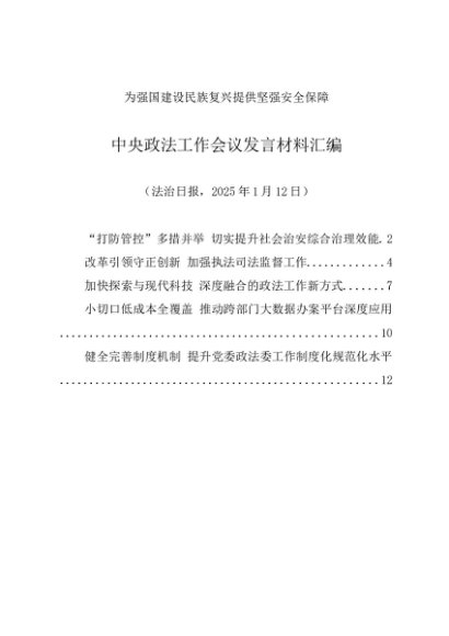 / 交流发言:20250112中央政法工作会议发言材料汇编(5篇)