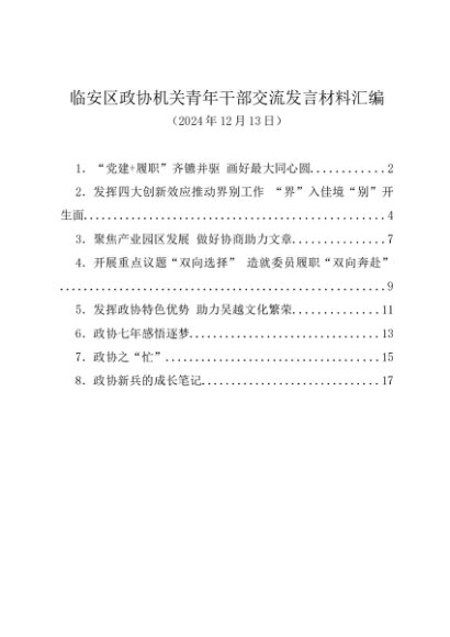/ 交流发言:20241213临安区政协机关青年干部交流发言材料汇编(8篇)