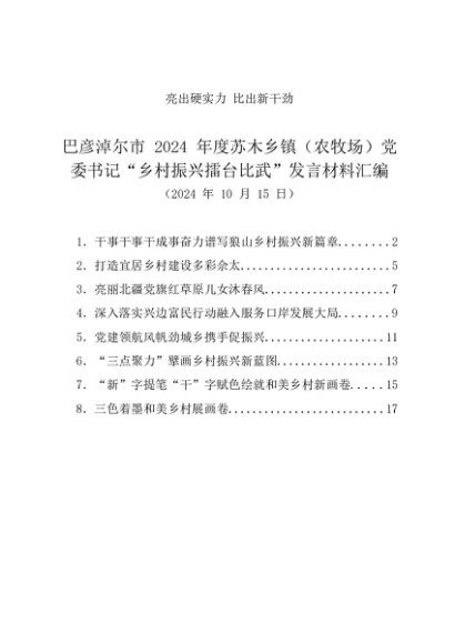 / 交流发言:20241015巴彦淖尔市 2024 年度苏木乡镇(农牧场)党委书记“乡村振兴擂台比武”发言材料汇编8篇