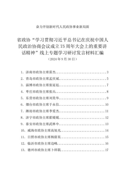 交流发言:20240930省政协学习贯彻习近平总书记在庆祝中国人民政治协商会议成立75周年大会上的重要讲话研讨发言材料汇编(16篇)