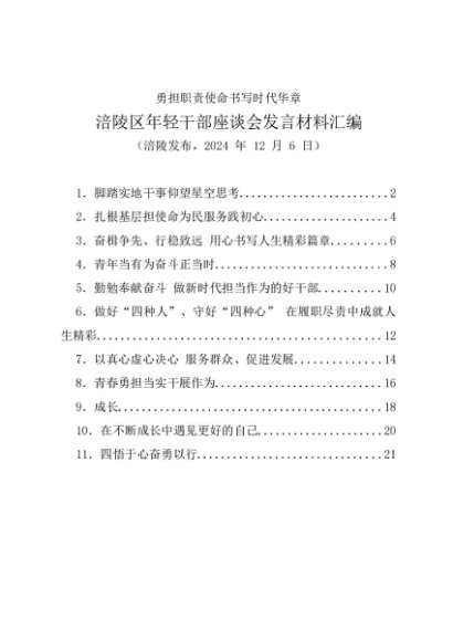 / 交流发言:20241206涪陵区年轻干部座谈会发言材料汇编(11篇)