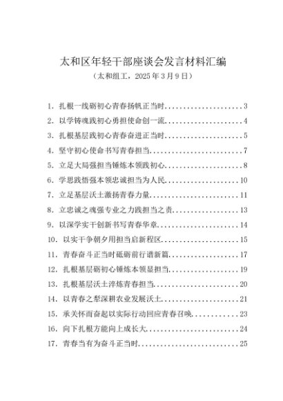 / 交流发言:20250309太和区年轻干部座谈会发言材料汇编(20篇)