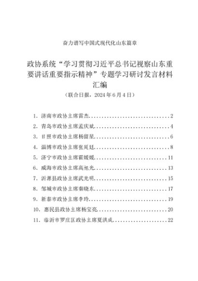 / 交流发言:20240604政协系统“学习贯彻习近平总书记视察山东重要讲话重要指示精神”专题学习研讨发言材料汇编(11篇)