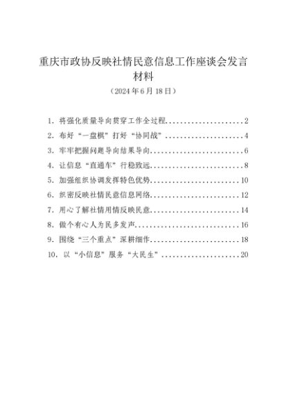 / 交流发言:20240618重庆市政协反映社情民意信息工作座谈会发言材料(10篇)