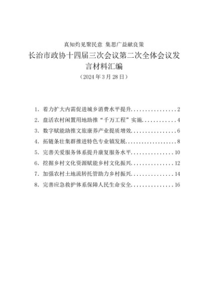 / 交流发言:20240328长治市政协十四届三次会议第二次全体会议发言材料汇编(8篇)