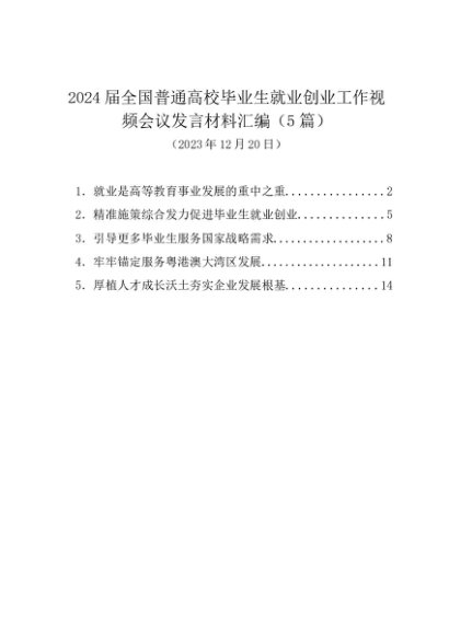 / 交流发言:20231220全国2024届普通高校毕业生就业创业工作视频会议发言材料汇编(5篇)