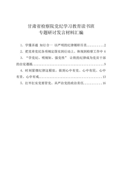 / 交流发言:20240504甘肃省检察院党纪学习教育读书班专题研讨发言材料汇编(5篇)