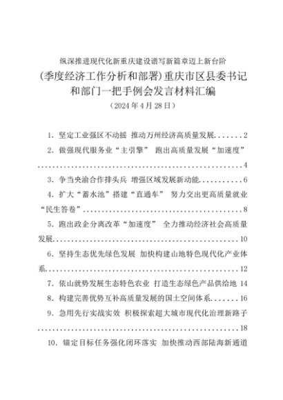 / 交流发言:20240428(季度经济工作分析和部署)重庆市区县委书记和部门一把手例会发言材料汇编(10篇)