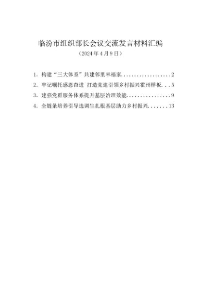 / 交流发言:20240409临汾市组织部长会议交流发言材料汇编(4篇)