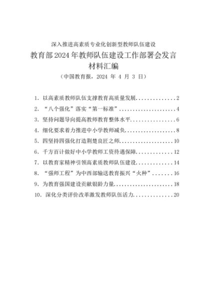 / 交流发言:20240403教育部2024年教师队伍建设工作部署会发言材料汇编(10篇)