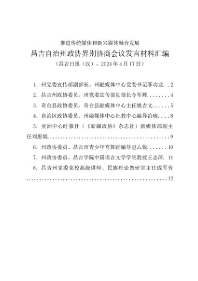 / 交流发言:20240417昌吉自治州政协界别协商会议发言材料汇编(8篇)