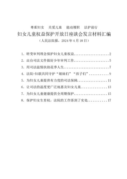 / 交流发言:20240418妇女儿童权益保护开放日座谈会发言材料汇编(8篇)