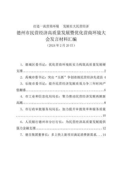 / 交流发言:20240220德州市民营经济高质量发展暨优化营商环境大会发言材料汇编(7篇)