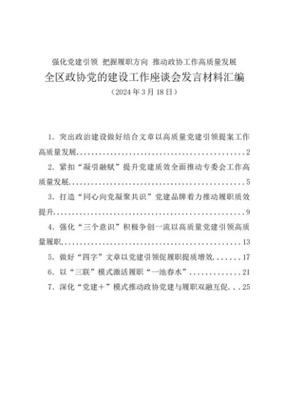 / 交流发言:20240318(党建工作)全区政协党的建设工作座谈会发言材料汇编(7篇)