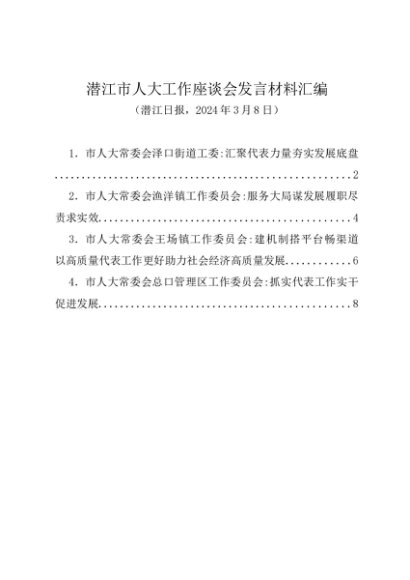 / 交流发言:20240308潜江市人大工作座谈会发言材料汇编(4篇)