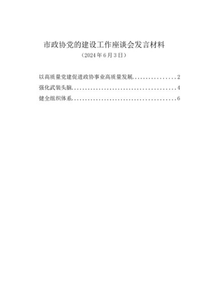 / 交流发言:20240603市政协党的建设工作座谈会发言材料(3篇)