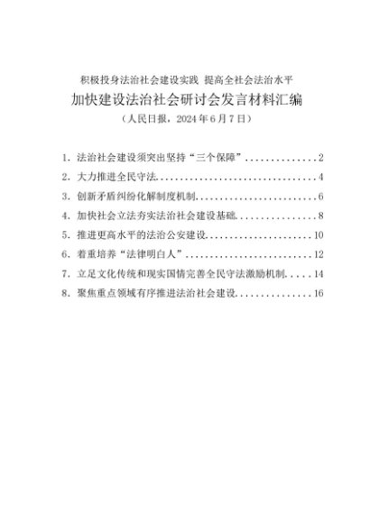/ 交流发言:20240607加快建设法治社会研讨会发言材料汇编(8篇)